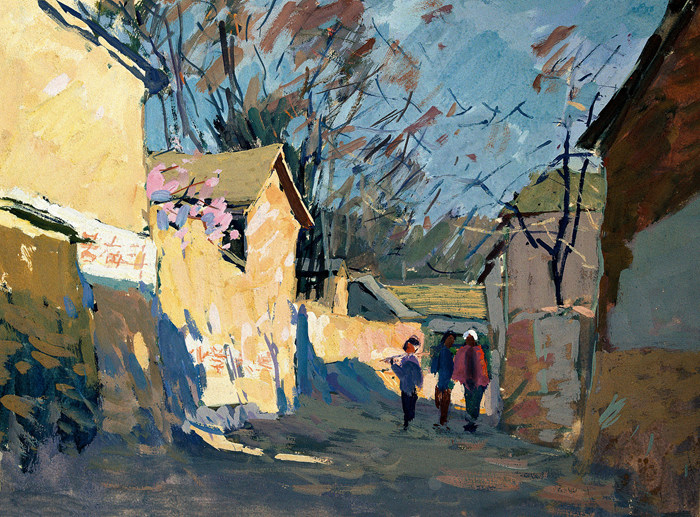 《神星村》鐵揚 紙本水粉 26cm×35cm 1969年