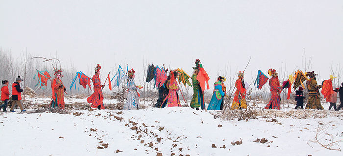隴縣鄉村社火隊走在皚皚白雪中 喬曉光拍攝 2019年 圖片來源:《村莊里的藝術》