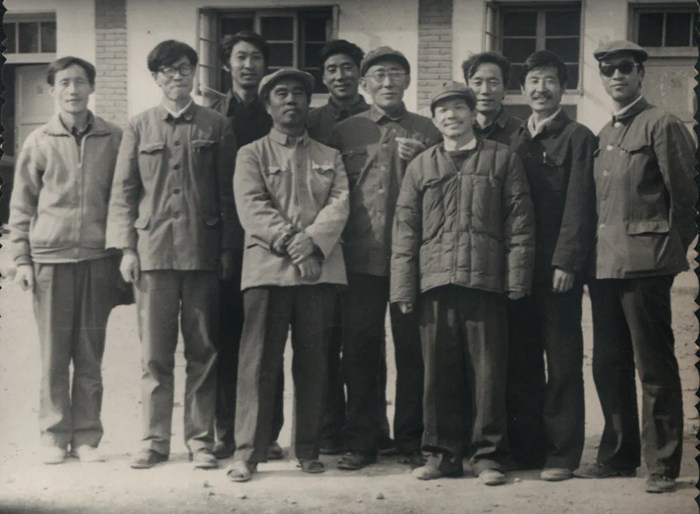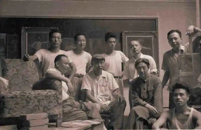 1953年,徐悲鴻與同事們最后的合影。第一排左起:江豐、王式廓、徐悲鴻、戴澤;后排左起:李宗津、倪貽德、馮法祀、莊子曼、曹思明 (攝影 戴澤)