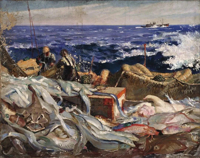 《在海洋上》布面油彩 74×93cm 1961年中央美術學院美術館藏
