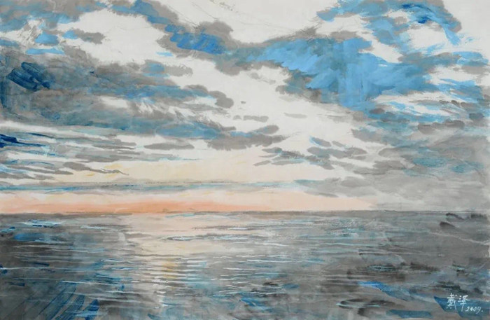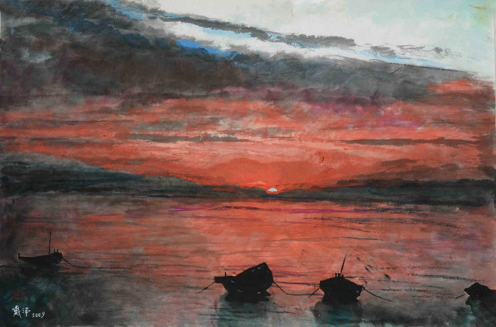 《紅船朝霞》紙本設色 46×70cm 2009年