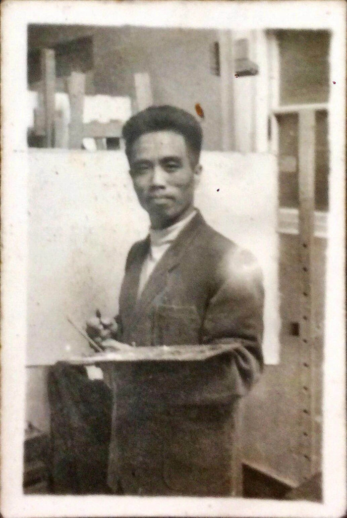 《老虎灘垂釣》紙本油畫 50.5×17cm 1961年