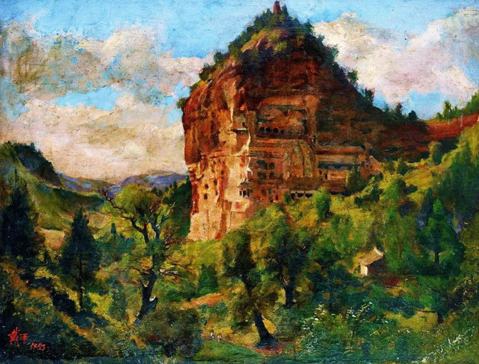 《麥積山石窟》木板油彩 62×75cm 1953年