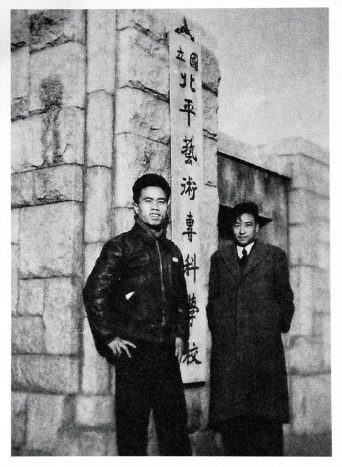 1949年初戴澤與李斛在國立北平藝專門前留影