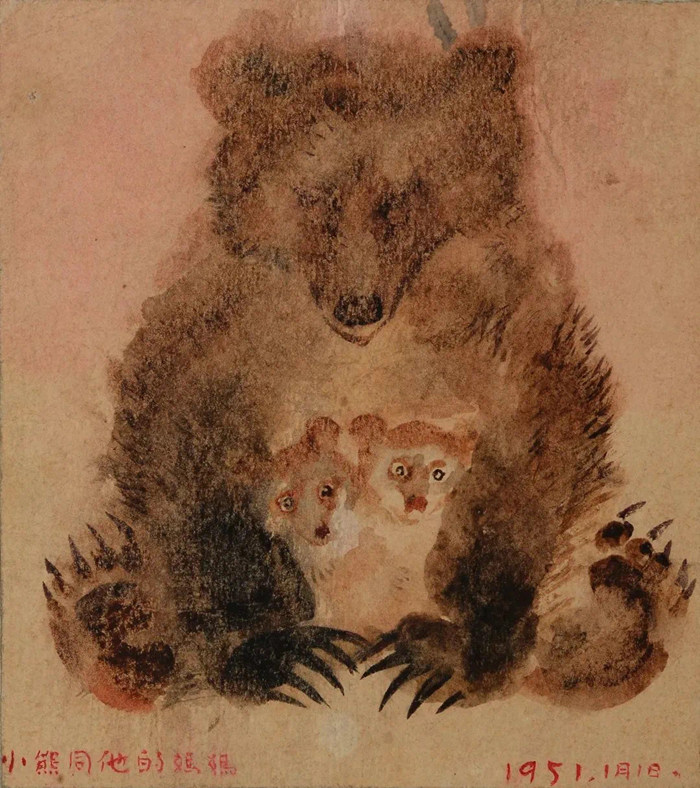 《小熊同他的媽媽》紙本水彩 32.3×25.2cm 1951年