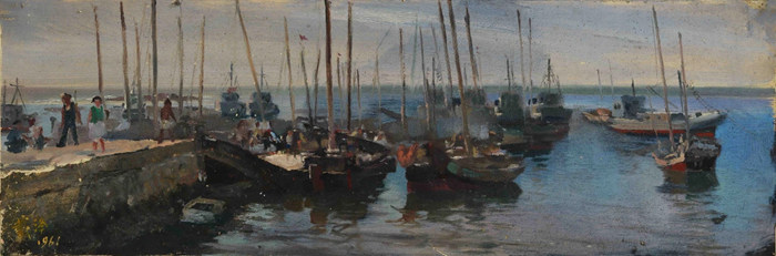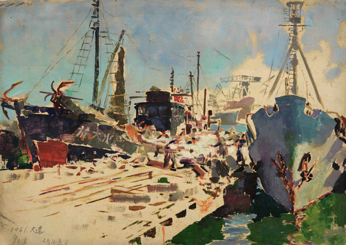 《大連碼頭速寫》 51×36cm紙本油畫 1961年