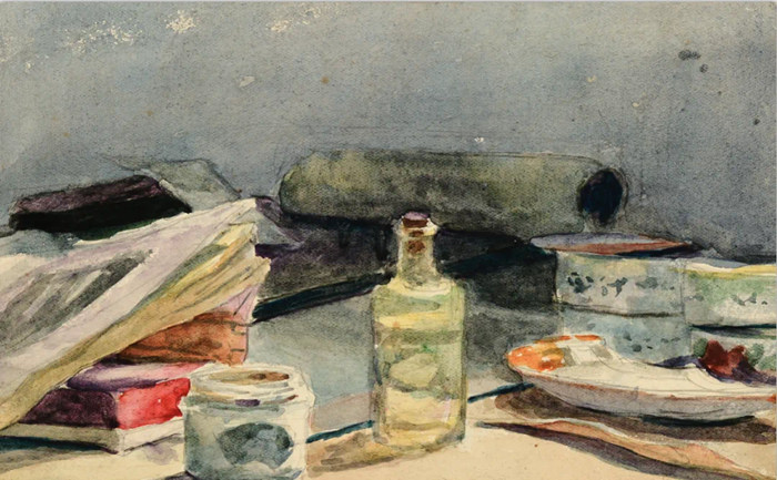 《中央大學的課桌》紙本水彩 12x18cm 1944年
