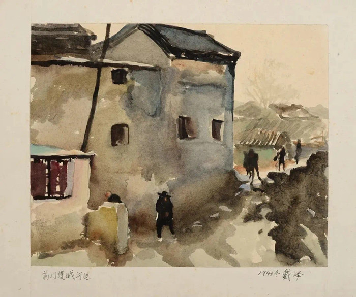 《前門護城河邊》紙本水彩 30x34.7cm 1946年