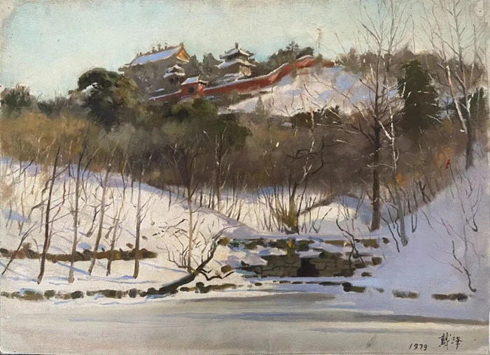 《頤和園后山的雪》紙本油彩 36×49cm 1979年