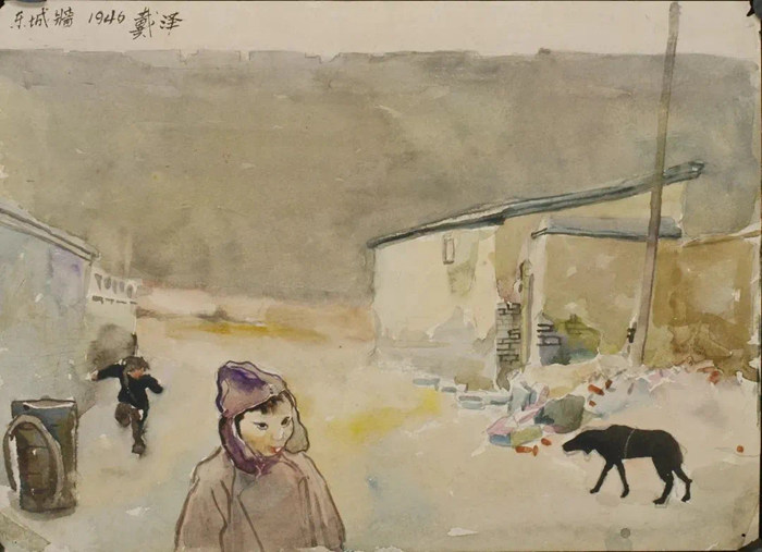 《北平街頭的乞丐》紙本油彩 40.6×29.6cm 1946年中央美術學院美術館藏