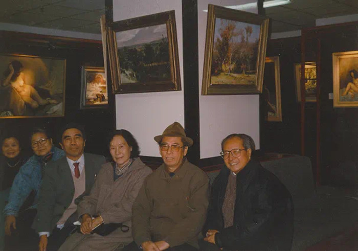 1990年代,與廖靜文、錢紹武、伍必端、鄧澍等在畫展合影