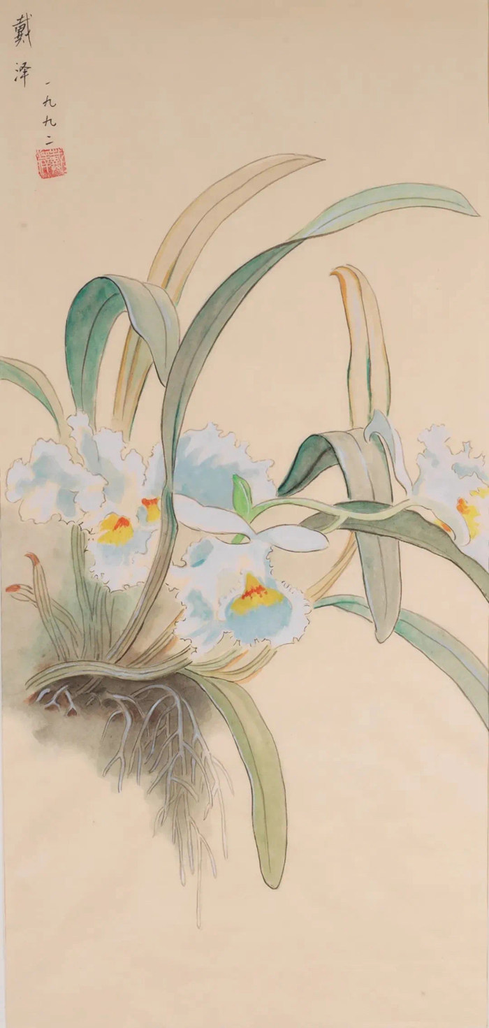 《花卉》中國畫 69×35cm 1992年中國美術館藏