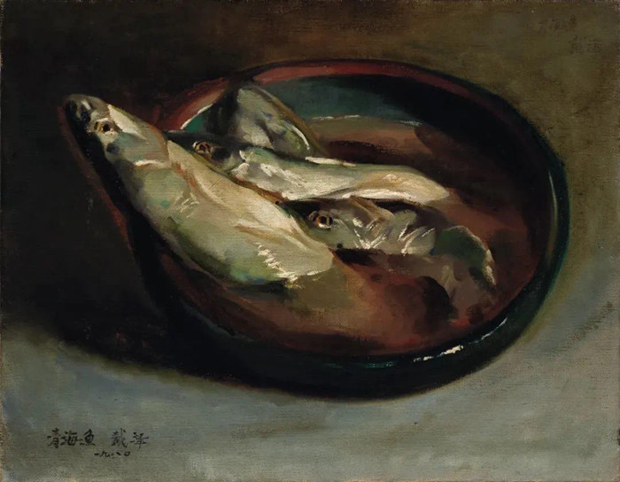 《靜物(青海魚)》油畫 141×53cm 1980年中央美術學院美術館藏