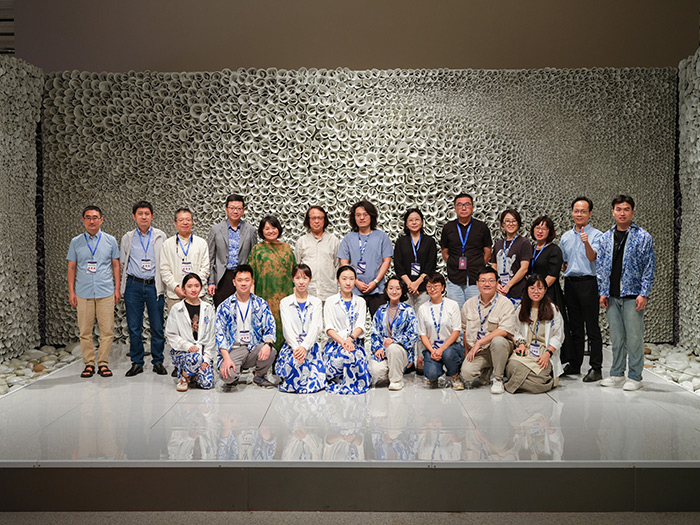 他說,此次展覽主題與其負責的名為“文化自信與文化傳承研究”很有關聯,他認為文化自信與文化傳統連接在一起,但僅僅講傳統是不完整的,傳統是一個存在,傳承面向未來。不僅要傳的下來,還要接得住,能延續下去。朱老師的展覽“在傳承中創造”與其課題不謀而合,他因此受到很多的啟發。提及藝術跟生活的關系,一方面,藝術定義生活,提出一些觀念的東西。另一方面,指出藝術對生活的拓展,是向空間和時間上進行延伸。此展覽打開了藝術和生活之間的通道。通過整體的設計,兩者直接是打通的。也意味著延伸了時間藝術和空間藝術,進而催生出場景流,成為一種無限的延伸,給人的想象和體驗是多方面。第三點,他指出展覽在國際文化交流當中的意義。除了要引起共鳴,還要給人帶來啟示。他最后建議在中國建立一個陶瓷音樂廳。認為朱老師在韓國做的陶瓷音樂廳,是陶瓷和空間結合,是時空的融合,是特別偉大創新,非常震撼。中國作為一個陶瓷大國,至少在景德鎮,或者江西南昌應該建一座陶瓷音樂廳,這是對陶瓷文化的張揚,也體現陶瓷領域跟現代生活建構之間的創新和創造性的轉化,其意義非凡。