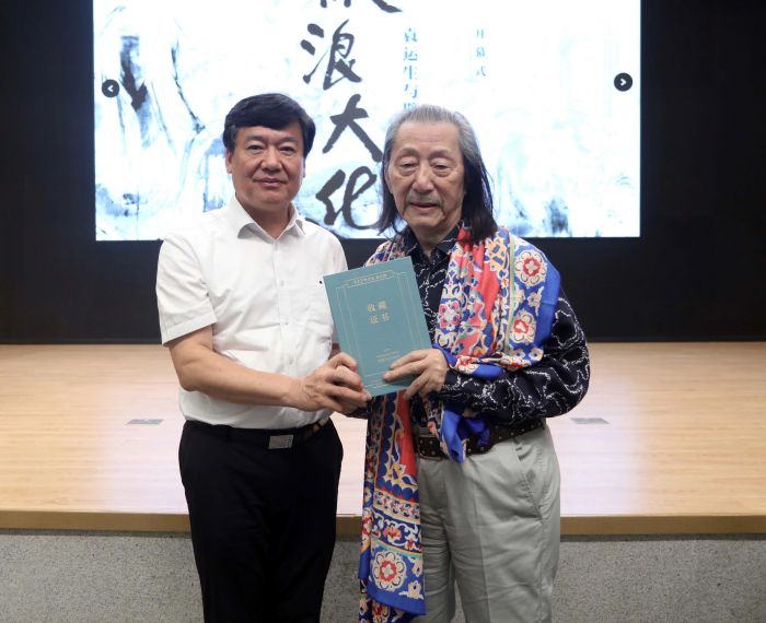 中央美術學院黨委書記高洪向袁運生先生頒發捐贈收藏證書