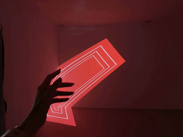 這些符碼被藝術家轉化為流動的光影,在展覽“編碼”與“織造”的同類隱喻中,對應并象征著服裝生產過程中線條、圖案、面料、包裝、流通與展示等多元素的動態演變過程: