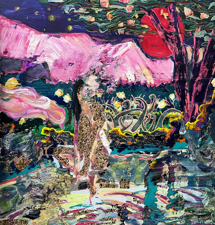 作品名稱:《春天如此浪漫》 作品尺寸:200×200cm 材料:布面油畫 創作年代:2021年