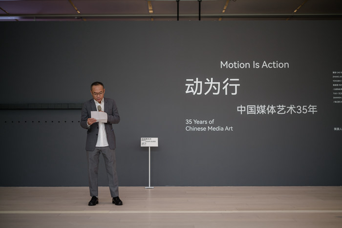 此次展覽共匯集了72位/組不同代際藝術家的79件代表作品,囊括影像、裝置、行為、交互、游戲、網絡等作品形式。視角回溯至早期的錄像藝術實踐,同時也延展到對人工智能、太空藝術等新興媒材或藝術形態的前沿探索。這些作品按照時間順序串聯,以“運動”為關鍵詞展現“作為行動的運動”、“作為互動的運動”和“作為能動的運動”三個章節。隨著三個章節區域的轉換,觀眾仿佛置身于一場時間旅行中,跟隨藝術家逐步了解不同的時代問題,探索藝術創作在媒介、表現形式和觀念上的轉變,感知藝術世界的深度與廣度。