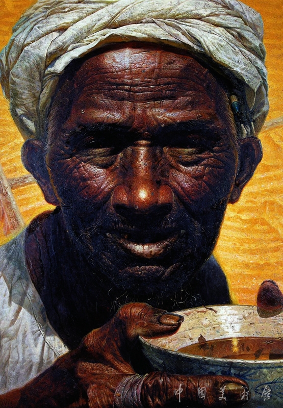 該畫用濃厚的油彩,精微而細膩的筆觸,塑造了一幅感情真摯、純樸憨厚的普通農民形象。即使沒有斑斕奪目的華麗色彩,也沒有激越蕩漾的宏大場景,但作者依然刻畫得嚴謹樸實,細而不膩,豐滿潤澤。背景運用土地原色呈現出的金黃,來加強畫面的空間感,體現了人物形象外在質樸美和內在的高尚美。畫作獲第二屆全國青年美展一等獎。