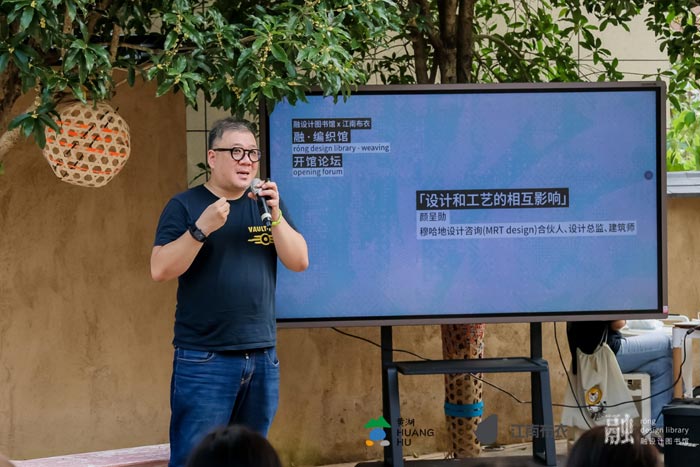 品物流形和融設計圖書館創始人、設計總監張雷在開幕式中致辭:“融·編織館是融設計圖書館與江南布衣聯合建立的編織主題材料研究博物館,它的使命就是解構中國面料工藝,并共享給所有的中國設計師和品牌,融·編織館將呈現我們和江南布衣五年研究的成果。我們希望通過這一重要的方式推動與工藝的銜接、當代藝術的銜接,同時也推動商業和中國傳統文化的結合,同時我們與黃湖鎮青山村的緊密結合,這三方的結合導致未來我們可以把融設計圖書館從一棵小樹,慢慢培養成森林,我們會用這樣一種模式,去嘗試建設未來的木材料館,未來的隼牟館,未來的鑄造館,我們希望中國傳統手工藝、傳統文化和設計藝術緊密結合,和商業緊密結合,在青山村落地生根?!?/p>