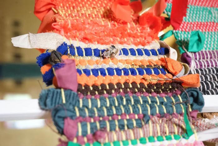 「編織接力」是由江南布衣集團發起,攜手編織藝術家——洛盞,利用江南布衣集團往季的庫存面料進行創作,借助改良版小腰機與每一位參與者的巧手,共創出獨一無二的編織織物。