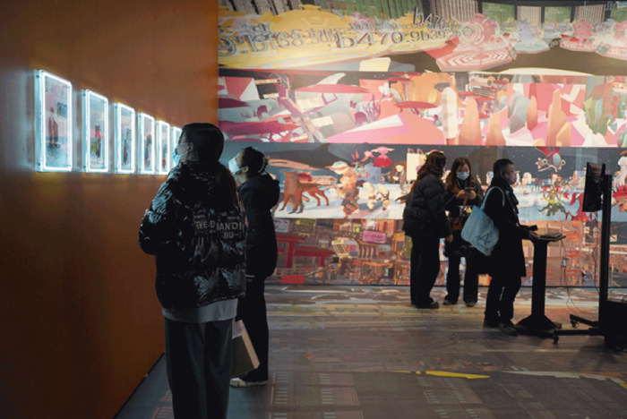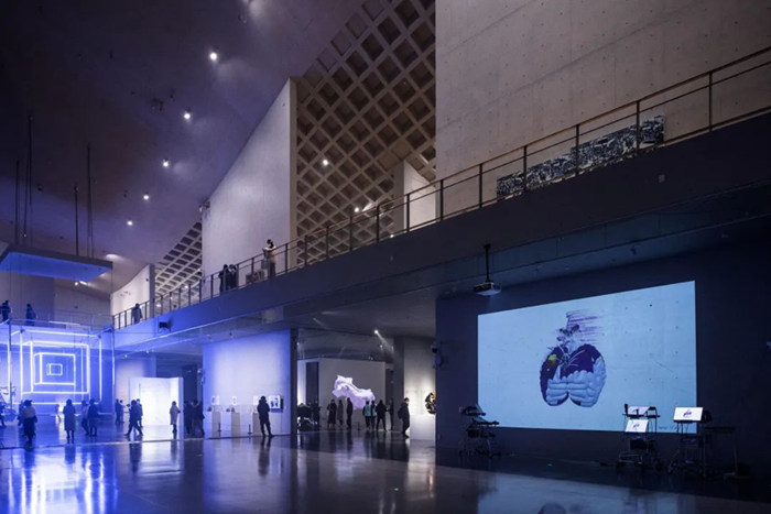 2022武漢雙年展,觀眾在作品《Cyberbobo》前駐足