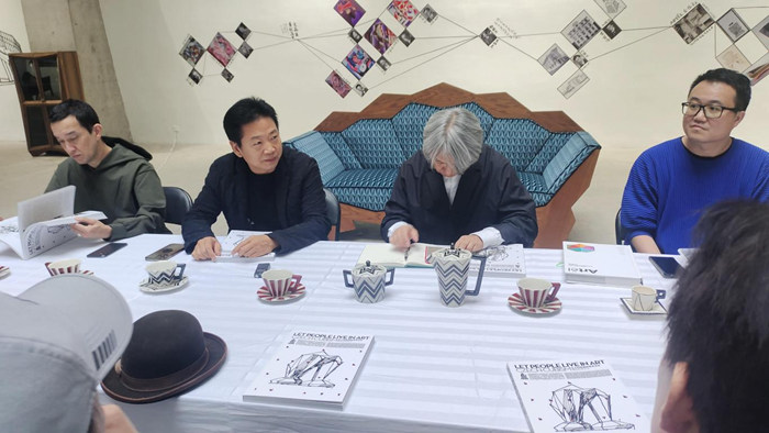 北京畫院院長吳洪亮說:我覺得阿覃是不是先給我們講講課,給我們普及一下,我們在這方面是抱著聽你講課來的。