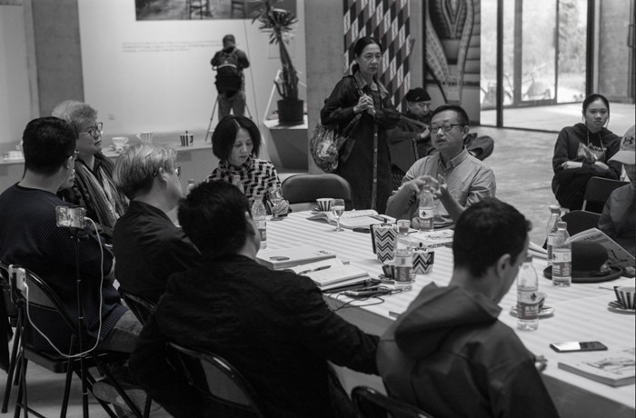 策展人覃琨瑛(阿覃)主持論壇(中間)