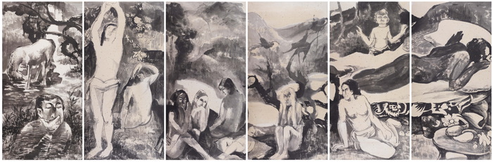 吳運鴻《塔希提之夢-六聯畫》紙本水墨