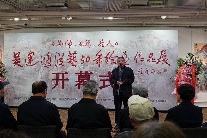 2023年10月28日下午,“為師、為藝、為人——吳運鴻從藝五十年繪畫作品展”在鼎元國際藝術中心開幕。此次展覽展出藝術家吳運鴻國畫、綜合材料、素描、陶瓷繪畫等作品,是藝術家五十年來多方面藝術成果的小結。本次展覽由徐悲鴻藝術沙龍、中國網藝術中國、北京師白藝術研究會主辦,鼎元國際藝術中心、北京正舉沈鵬書畫院協辦,中國畫學會擔任學術支持。