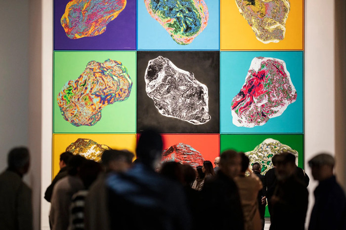 這次參展的四位藝術家都是八五時期“中央工藝”的同學,是袁運甫直接或間接的學生,初看各自的藝術追求迥異,但集合起來,脈絡正是“大美術”思想下的革命和反叛。從他們身上,可以看到中央工藝先生們的年輕模樣:張大力的行為和雕塑,呈現出強烈的諷刺與荒誕,視覺經驗在他的作品面前是虛無的;馬泉的裝置是他身體介入自然的思想記錄,充滿科技感;于會見的具象表現繪畫呈現對大地存在的追問,他在沉重之余又矛盾的顯現“輕”的意向;袁加的作品繼承了他父親的唯美,但無論是構圖、顏色和內涵,都與傳統不同,壯麗的裝飾結構下蘊含了復雜的抒情意味。