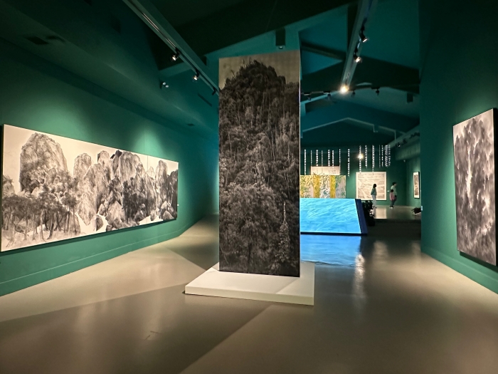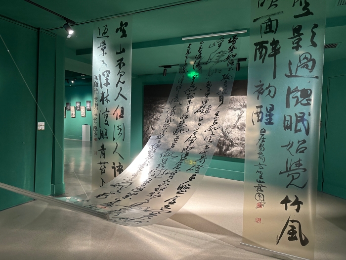 兩位藝術家一南一北跨地域碰撞,一畫一書采形式交錯,在同一展廳上演精彩的筆墨對話,雖氣質面貌迥然,然詩意在創作之道中穿梭,詩心在展覽初廳間已然激活顯現。