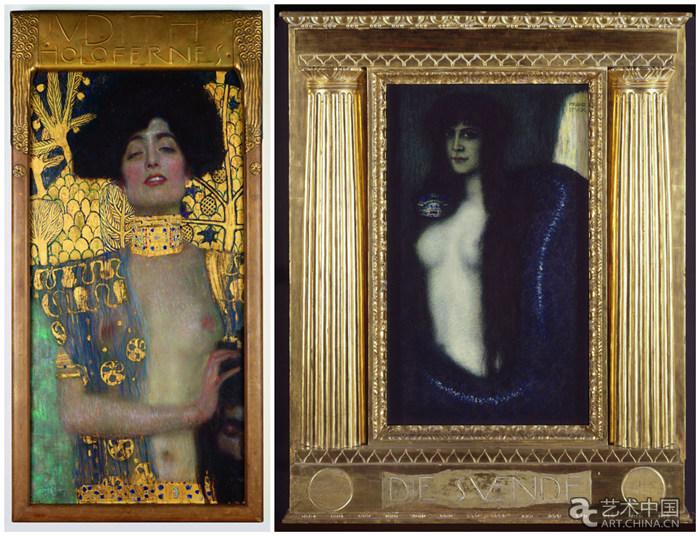 克里姆特《朱迪斯一號》(左)與施圖克代表作《罪惡》的對比