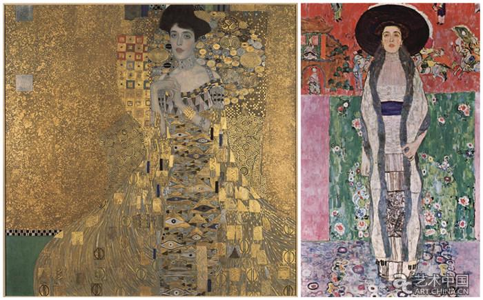 古斯塔夫·克里姆特 左:《阿黛爾一號》,1907,美國紐約新美術館;右:《阿黛爾二號》,1912,私人收藏
