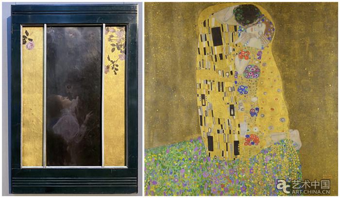 古斯塔夫·克里姆特 左:《愛》,1895,維也納博物館;右:《吻》,奧地利美景宮美術館