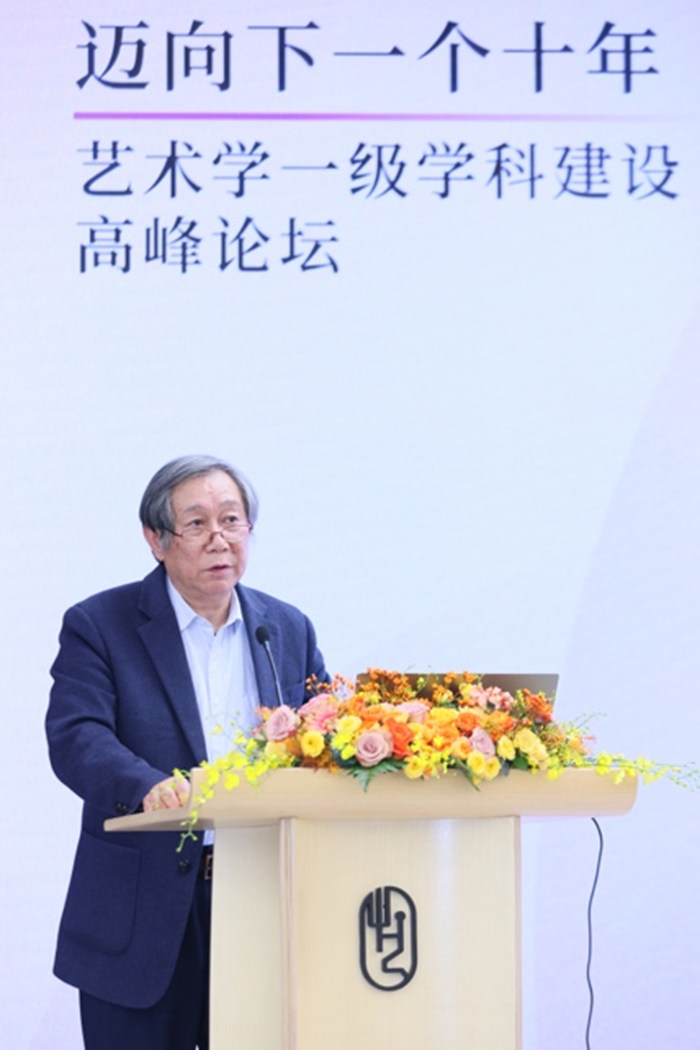 清華大學美術學院藝術史論系教授、中國藝術學理論研究所名譽所長陳池瑜的發言主題為“建構當代形態和民族特色的中國藝術理論和藝術史”。他認為,研究中國藝術理論、史觀,應當和探索中國藝術史結合起來,總結中國藝術的經驗、規律,建構當代形態和民族特色的中國藝術理論。他期望,各位專家學者能夠構建起中國當代藝術批評的話語體系,向世界貢獻具有中華民族特征的當代藝術理論。