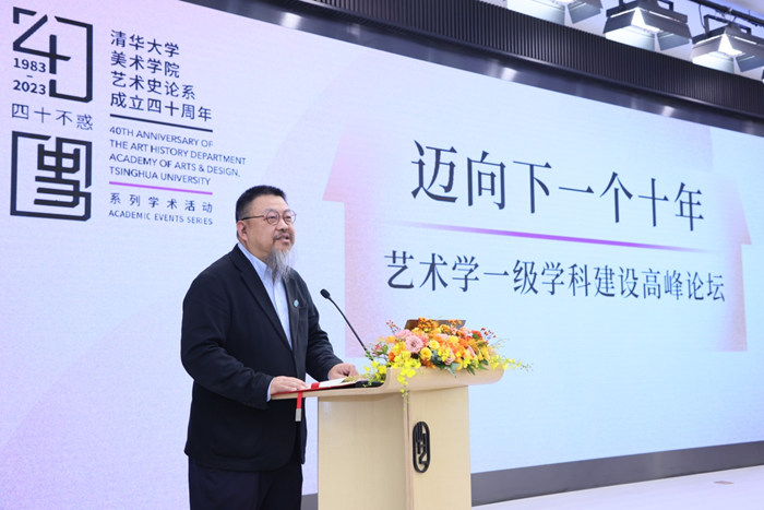 2023年11月4日上午,清華大學美術學院舉辦“四十不惑——清華大學美術學院藝術史論系成立四十周年慶典”活動。四十年光陰荏苒,藝術史論系自1983年建立以來,在保持工藝美術、設計史論研究傳統特色的同時,大力發展美術史和藝術基礎理論研究,形成了藝術史、藝術理論、藝術批評與藝術管理全面發展、各有側重的學科格局。學無止境,思無止步。值此四十華誕,藝術史論系回顧過往、暢議未來,邀請各屆系友、兄弟院校代表、專家學者共同探討藝術學一級學科的未來。