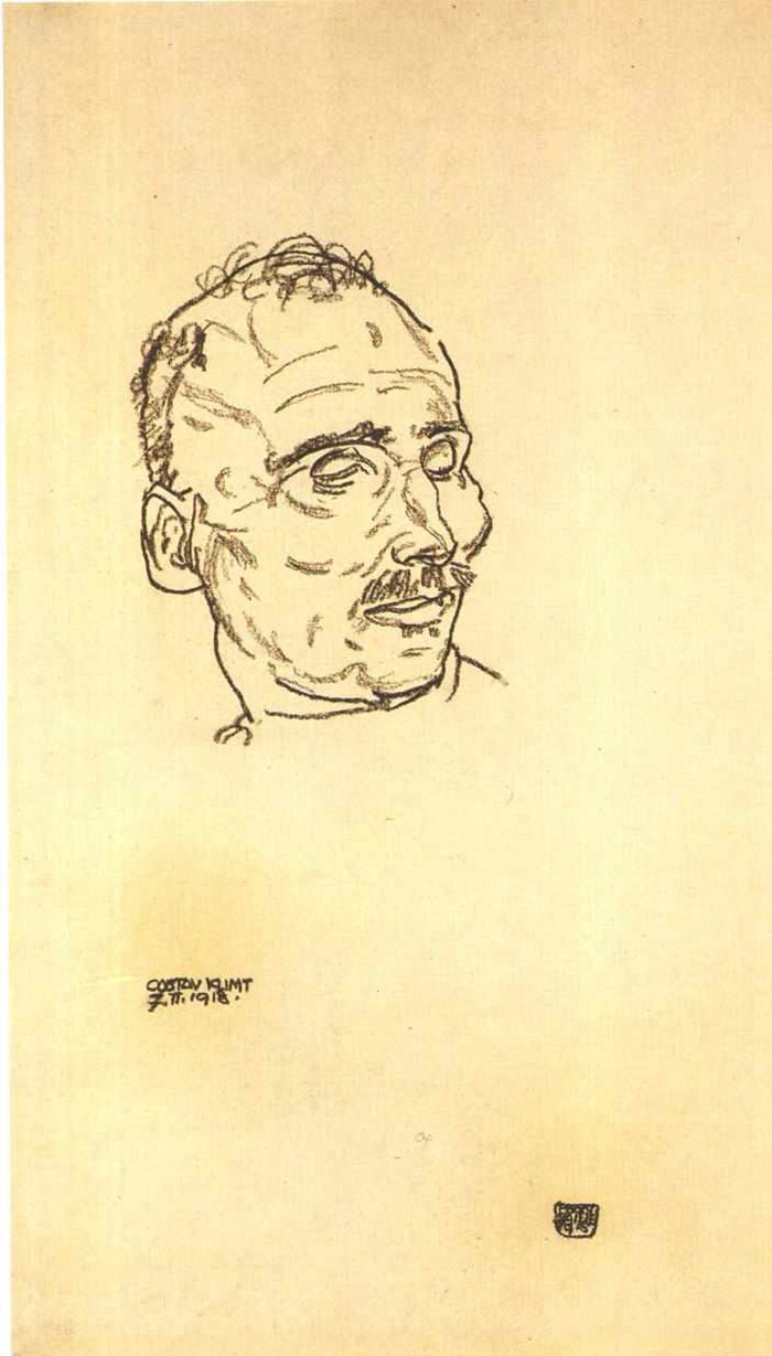 《古斯塔夫·克里姆特臨終前》,埃貢·席勒,1918,翻印自書籍?Wikipedia