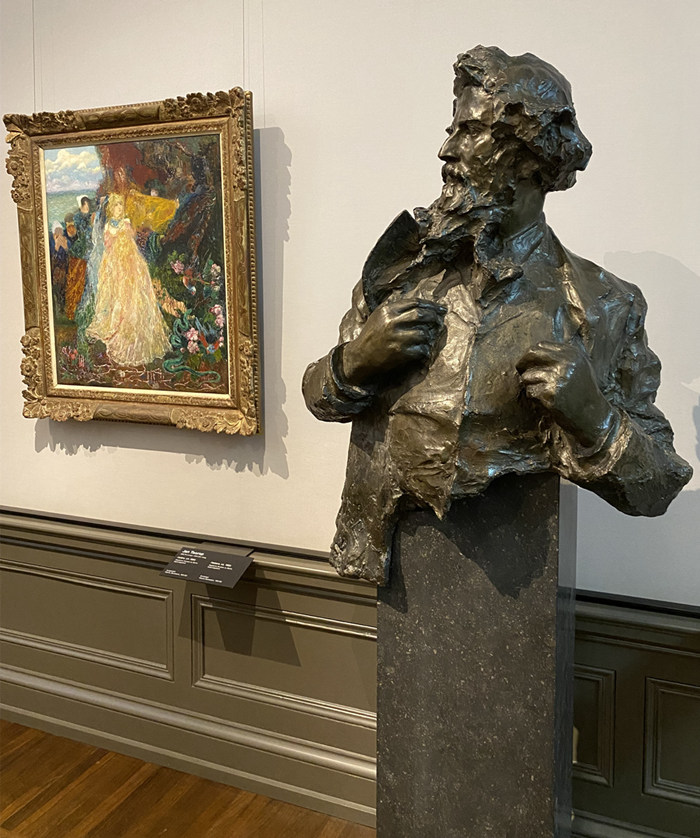 例如19世紀瑞士最著名的畫家之一費迪南德·霍德勒,他曾先后加入三城的分離派;荷蘭畫家揚·托洛普被認為是世紀交替年代歐洲藝術的關鍵人物,他的《交際花》是歐洲象征主義的重要作品;俄羅斯裔意大利藝術家保羅·特魯別茲科被文豪摯友蕭伯納譽為“近代最令人驚嘆的雕塑家”,展覽現場展示了他為意大利畫家喬瓦尼·塞岡蒂尼創作的胸像,喬瓦尼·塞岡蒂尼是分離派運動中最著名的“國際嘉賓”之一。
