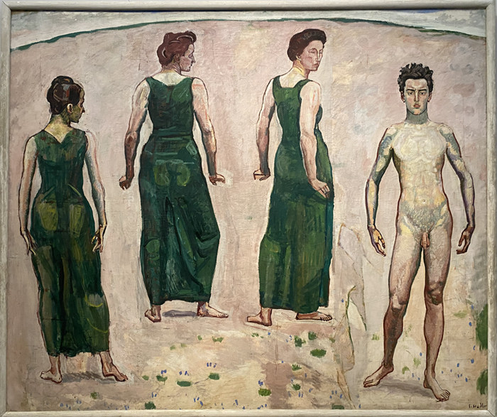 《女子傾慕的少年》,費迪南德·霍德勒,約1904,藏于瑞士戈特弗里德·凱勒基金會&蘇黎世美術館,曾展出于維也納分離派群展(1903)、柏林分離派群展(1905)