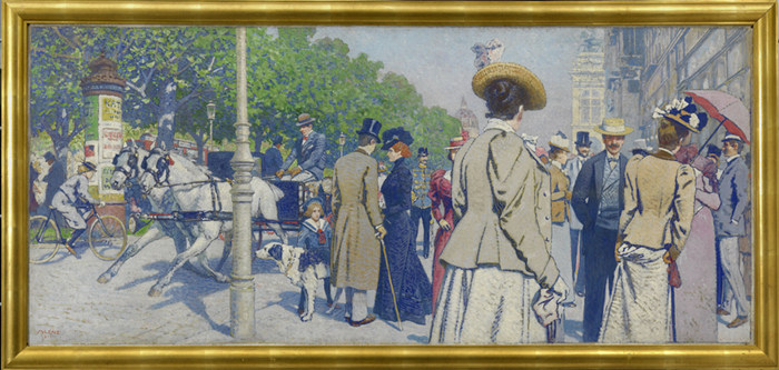 與之形成鮮明對比的是繁華都市資產階級的優雅格調,維也納分離派聯合創始人、奧地利畫家、雕塑家馬克西米利安·倫茨向人們展示了百年前光鮮的維也納,車水馬龍,舊國夢華。