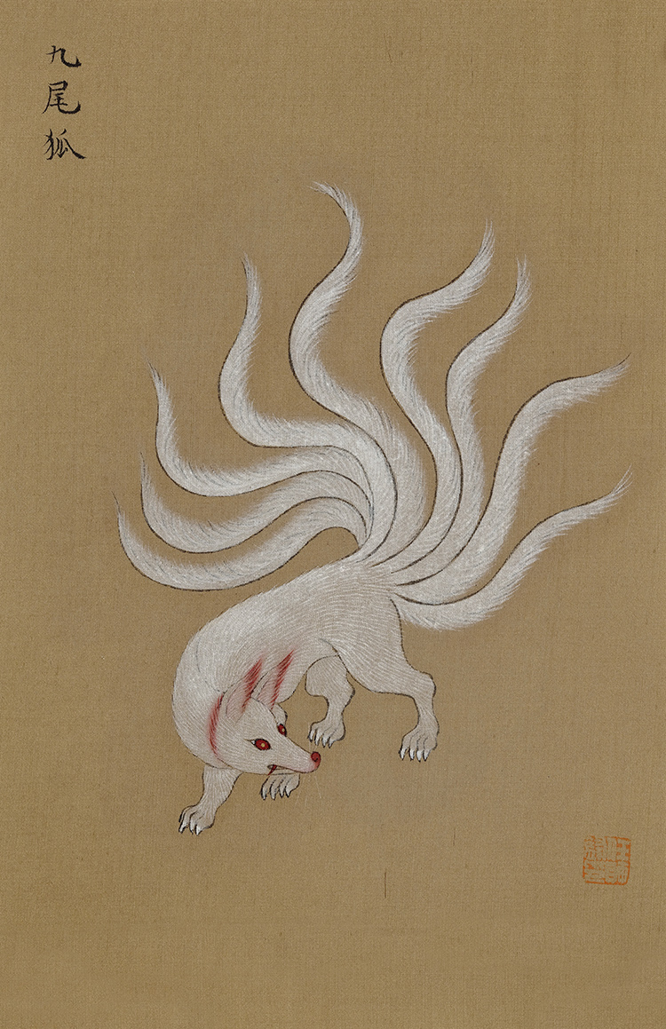 任才峰 《山海百靈冊之九尾狐》絹本設色18cmX27cm. 2018-2023
