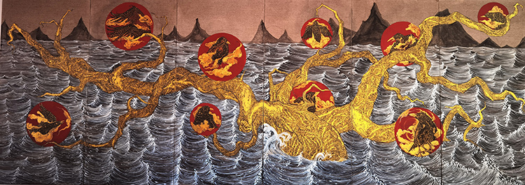 張少博 《山海經—東海-湯谷》布面丙烯420cmX150cm 2023
