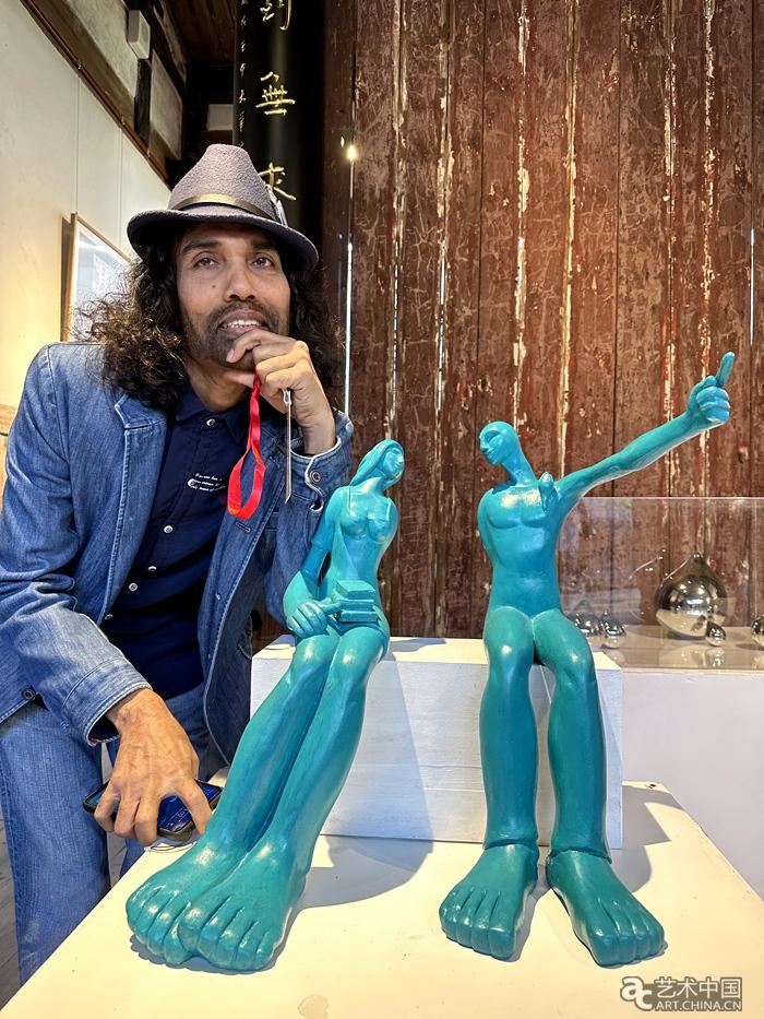 印度藝術家巴拉特(Bharat Singh)與他的雕塑作品《心門的鑰匙》