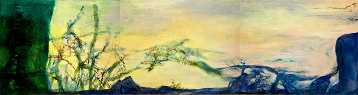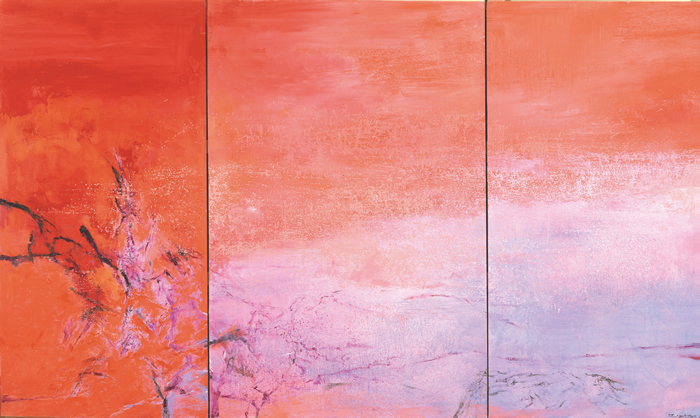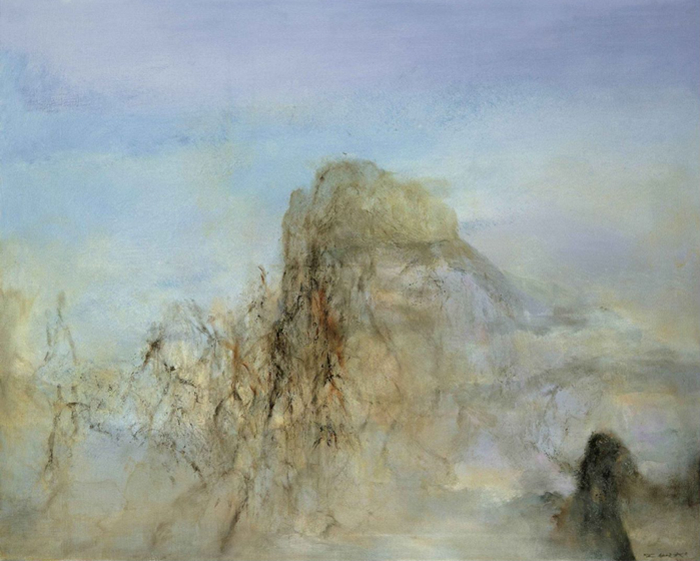 藝術家通過對空間、輕重、薄厚、流動、色彩、和筆的力度、速度和方向爐火純青地控制,通過畫面的轉化放大器,將東西方藝術、音樂和詩歌的境界倍增地呈現出來,不同地域不同文化背景的觀眾似乎都能在他的畫中讀出某種熟悉的感受。華人發現即使脫離于傳統造物形態,也能感受到悠遠的山水空間和金石的蒼勁感;法國人感受到莫奈、西斯萊印象主義精妙的光色融合;英國人感受到透納式大氣的磅礴流動感;詩人能感受到沉郁、激揚、矛盾和平靜等不同的情感起伏。