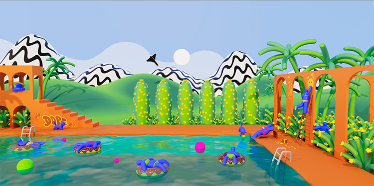 在這個展覽中,24位藝術家不僅僅是展示他們的作品,更像是帶領觀眾踏上一場奇妙之旅。劉天憐以當代工筆勾勒出繽紛斑斕的世界;牟林童則用詩意的筆觸描繪淺藍色的夢境;馬辰立采用涂鴉藝術,試圖跳出現實的框框;李偉和劉知音夫婦通過雕刻融合人與動物的形態,塑造出含蓄內斂的東方幻境,;吳舒的數字藝術將現實世界風景抽象成萬千線條在空間中蔓延,而顏石林則以虛擬現實技術創造出一個彌漫著神秘神話氛圍的靈境。