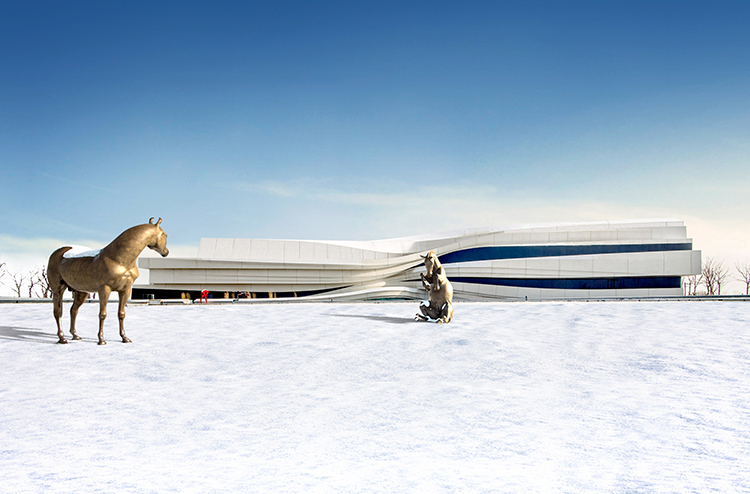 銀川當代美術館于2015年8月8日正式開館,建筑總面積約15000平方米,由waa未覺建筑事務所設計,建筑外觀設計靈感來自于黃河地質變化所形成的巖石褶皺肌理。