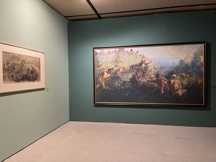 《青紗帳里游擊隊員逞英豪》,布面油彩,244×444cm,1977年,中國人民革命軍事博物館藏