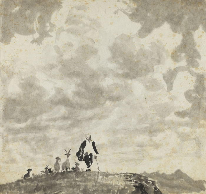 《老飼養員》,紙本彩墨,56×63cm,年代不詳