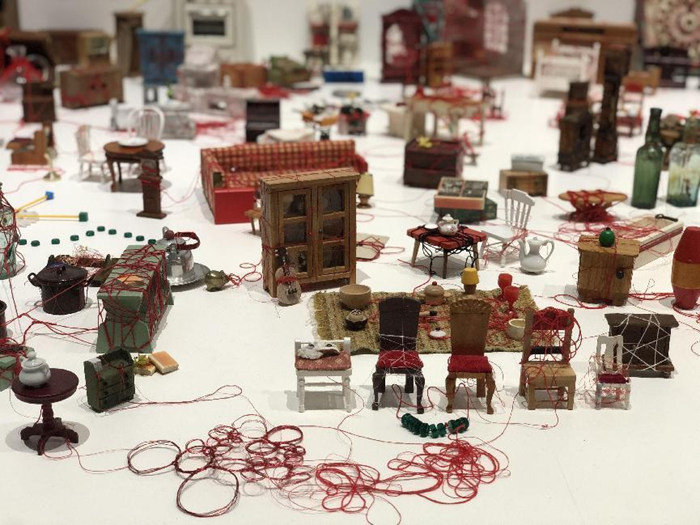 如果說黑色的線意味著死亡與痛苦的記憶,那么紅色的線便意味著生命的色彩與對未來的希冀。鹽田千春通過非常私人的物品來編織敘事,用線作為物體之間的連接,作品不直接表現人,卻在鉤織中處處顯人跡。